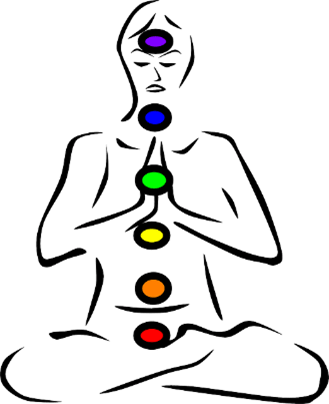 In the chakra model of energy distribution, sometimes called the energy body, there are seven chakras or non-physical energy centers. Chakra means wheel of light and is typically imagined as a rotating disk. Unlike the bodily organs, the chakras do not have firm edges, so they may overlap and extend beyond the boundaries of the physical body. The lower five are aligned along the spine, and spirit-energy flows up and down along it. The crown chakra is located just above the physical head and is where spirit-energy drawn from our environment is channeled into the third-eye chakra, which is located in the middle-brain area and is associated with the pineal gland. From there, spirit-energy follows the spine to the throat chakra which regulates brain/body communication. Next is the heart chakra, located just behind the heart, which governs circulation throughout the body. The solar plexus chakra empowers digestion and is located between the sternum and the naval. The sacral chakra is just below the naval and energizes reproductive activities. The root chakra is located at the base of the spine and regulates elimination processes. Spirit-energy can enter the body from the earth through the root chakra and travel up through the other centers, just as it can enter through the crown chakra and travel down.